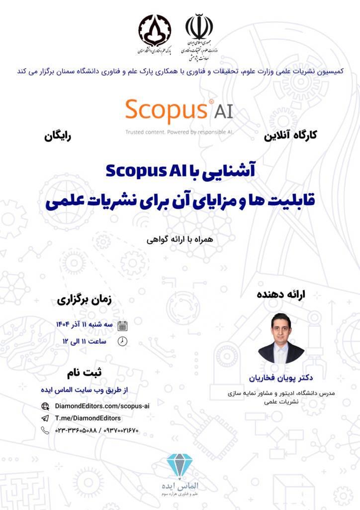 در این کارگاه آنلاین، شرکتکنندگان با Scopus AI و نقش تحولآفرین آن در مدیریت و ارتقای نشریات علمی آشنا میشوند. در این جلسه، کاربردهای هوش مصنوعی در تحلیل محتوای علمی، ارزیابی کیفیت مقالات، پیشنهاد داوران، بررسی سرقت علمی، پیشبینی روندهای پژوهشی و بهینهسازی فرآیند داوری تشریح خواهد شد. همچنین مزایای استفاده از Scopus AI برای سردبیران، هیئت تحریریه و پژوهشگران including افزایش سرعت تصمیمگیری، بهبود دقت ارزیابیها و ارتقای استانداردهای نشریه—بهصورت عملی و با مثالهای واقعی معرفی میشود. این کارگاه برای مدیران نشریات، پژوهشگران و هر فردی که به دنبال استفاده مؤثر از فناوریهای نوین در حوزه نشر علمی است، بسیار کاربردی و ضروری خواهد بود.